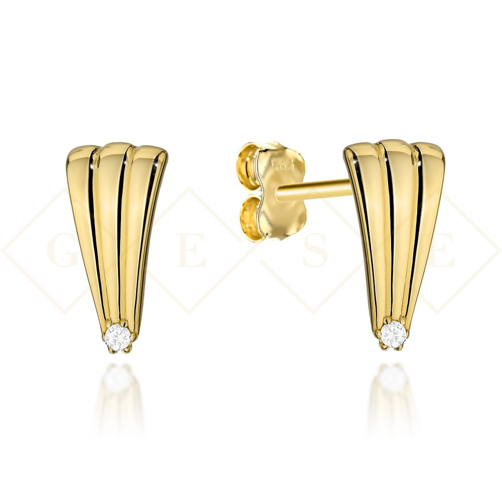 Kolczyki złote wydłużona muszelka z cyrkonią