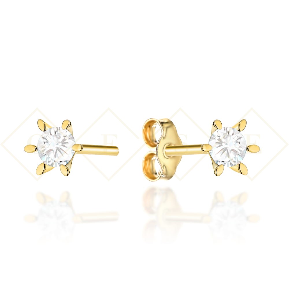 Kolczyki złote z dużą cyrkonią w sześciu łapkach