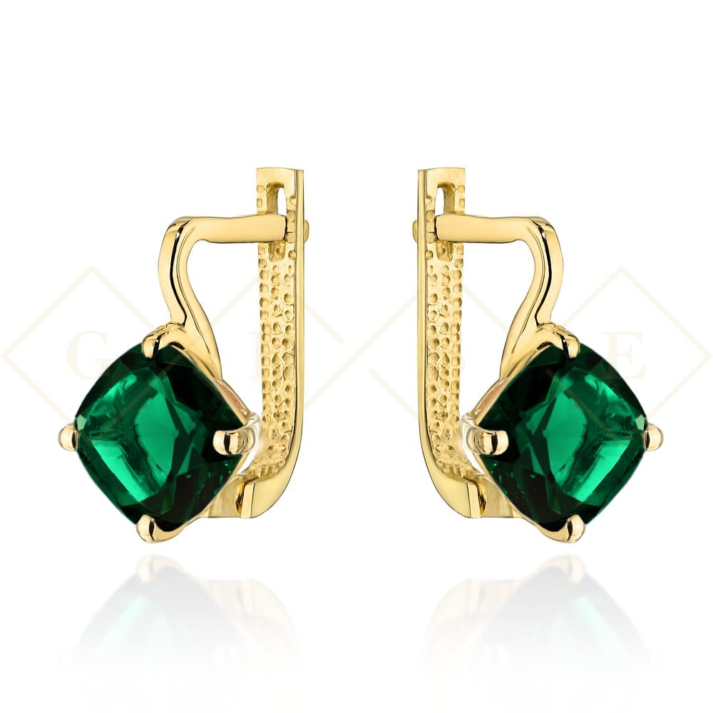 Kolczyki złote z kolekcji "COLORFUL STONE" z eleganckim zapięciem - zielony kwarc kwadrat