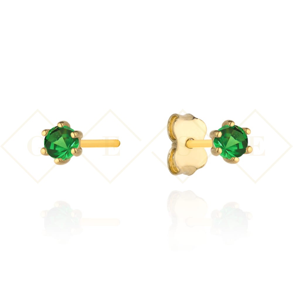 Kolczyki złote z zieloną cyrkonią