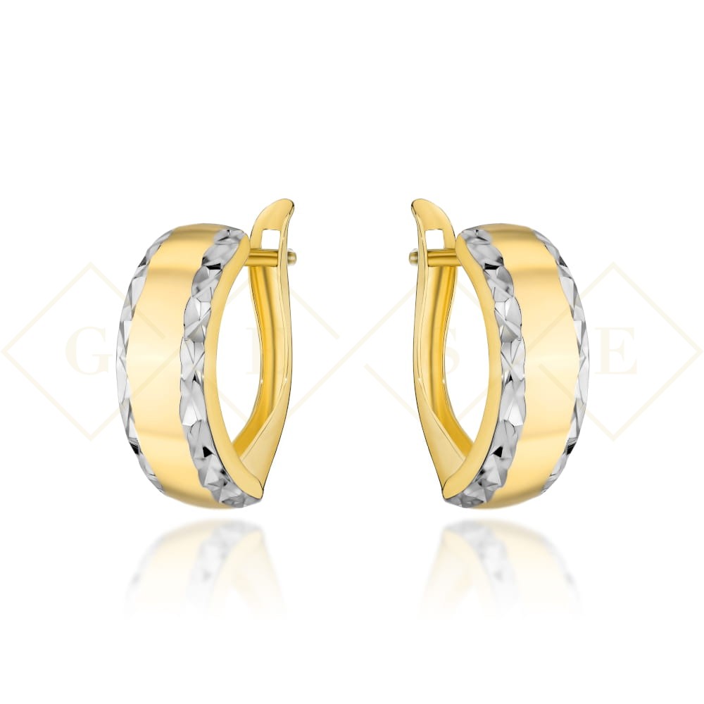 Kolczyki złote zaokrąglone z diamentowaniem w dwóch kolorach złota