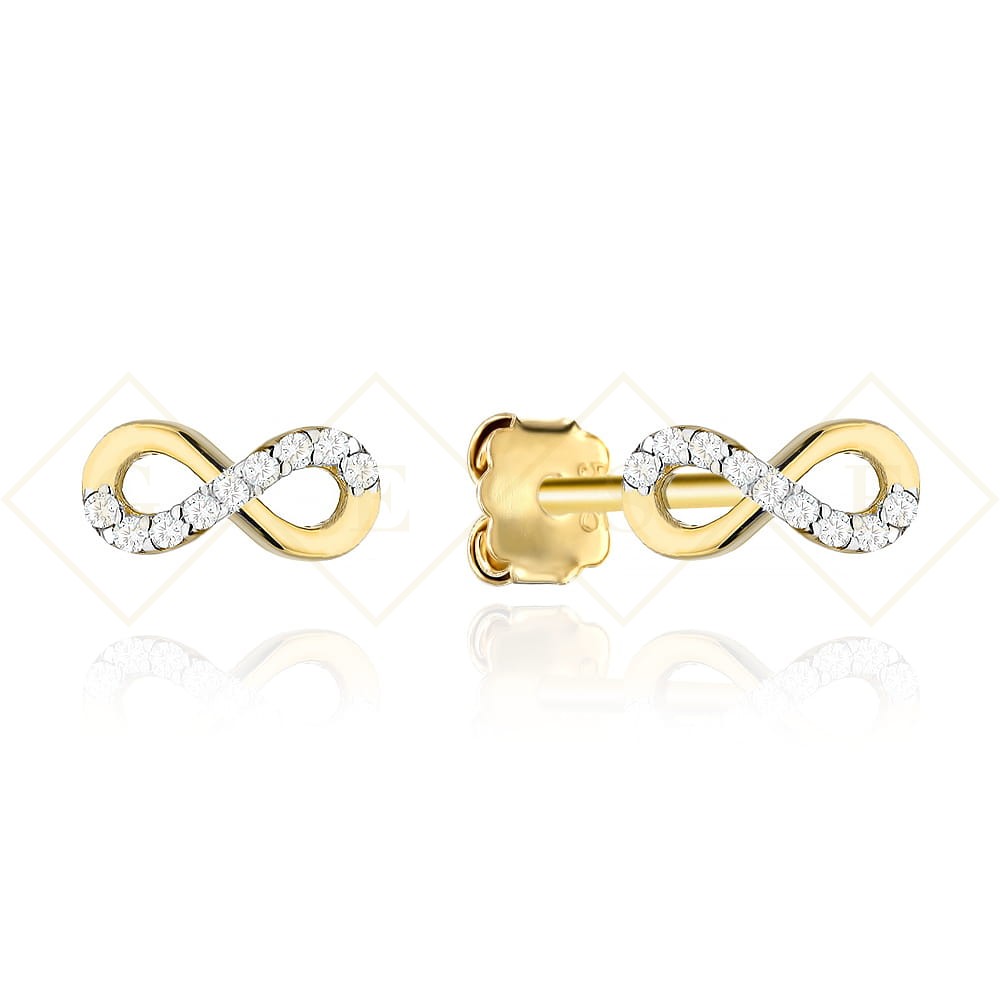 Kolczyki złote znaki nieskończoności zdobione cyrkoniami