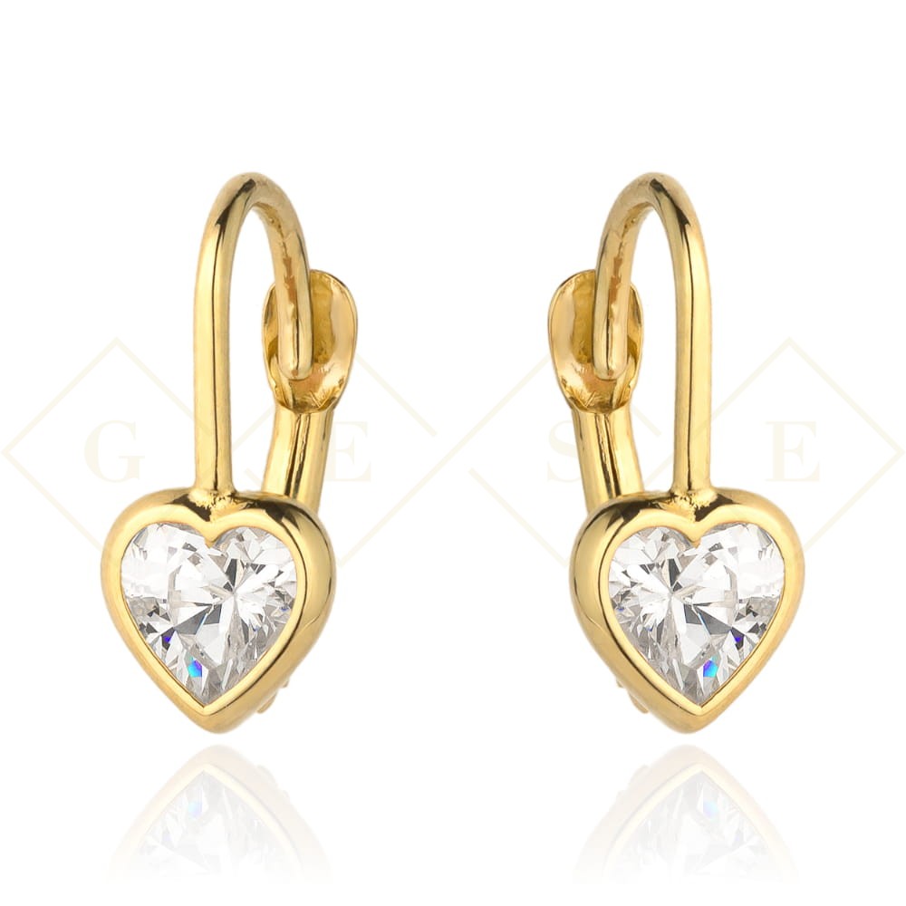 Kolczyki złoty kontur serca i biały kamień