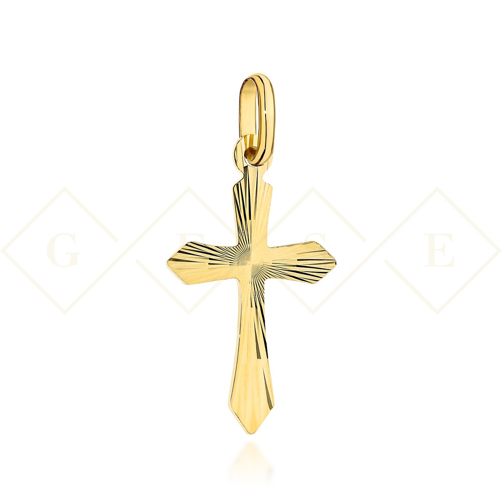 Precyzyjnie wykonany złoty krzyżyk próby 585.Pamiątka chrztu, pierwszej komunii, bierzmowania, ważnego jubileuszu czy rocznicy.