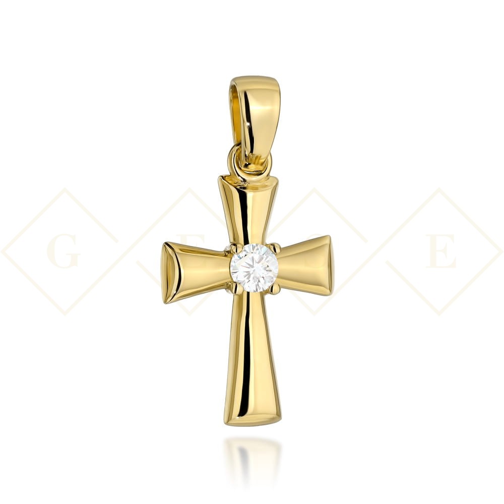 Precyzyjnie wykonany złoty krzyżyk próby 585. Jest to doskonałą pamiątka chrztu, pierwszej komunii, bierzmowania, ważnego jubileuszu czy rocznicy.