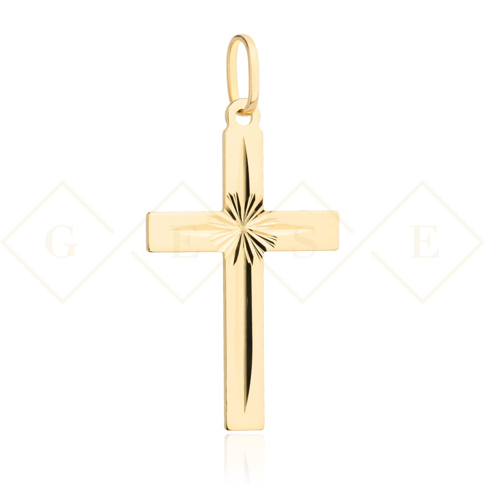 Precyzyjnie wykonany złoty krzyżyk próby 585.