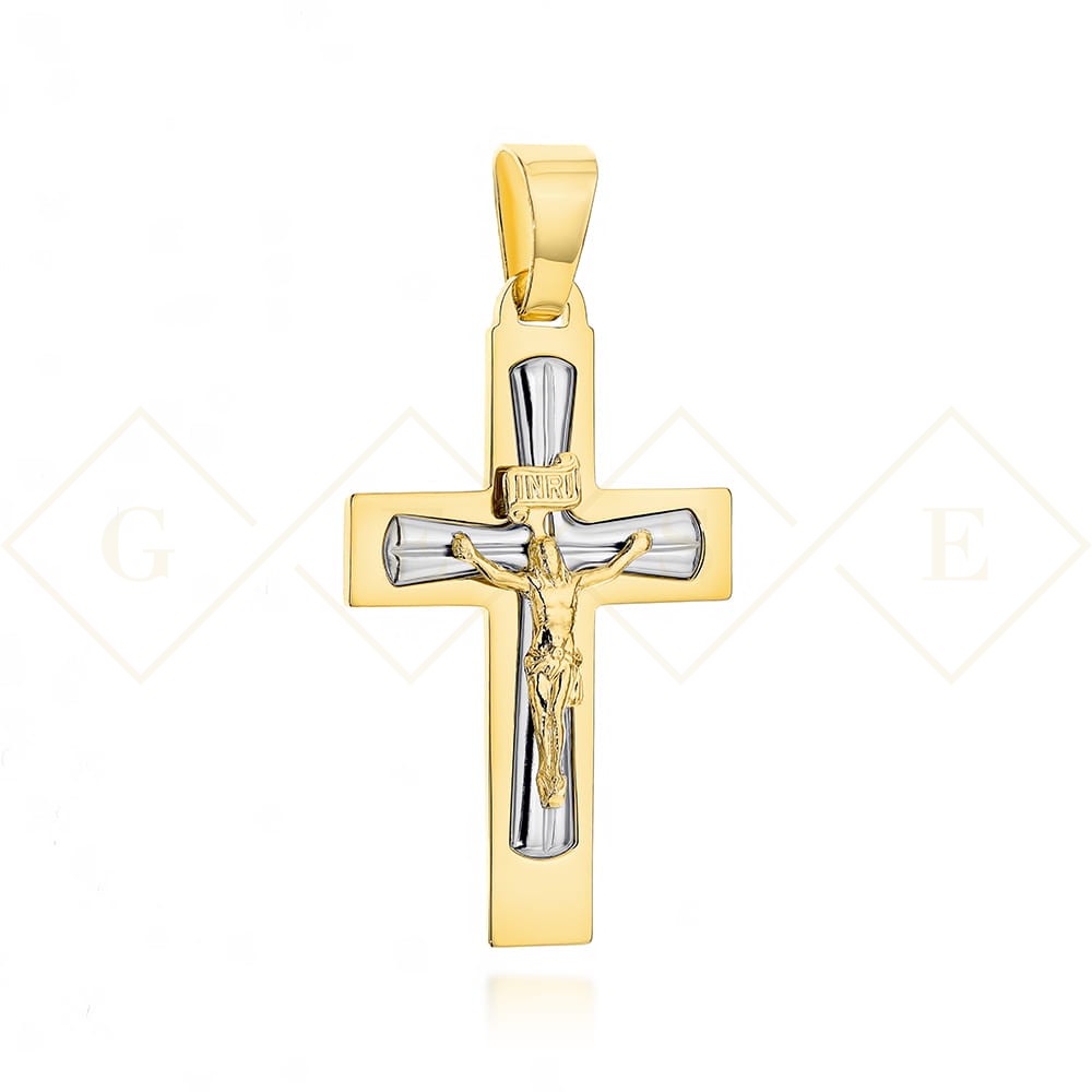 Krzyżyk złoty z ukrzyżowanym Jezusem w dwóch kolorach złota