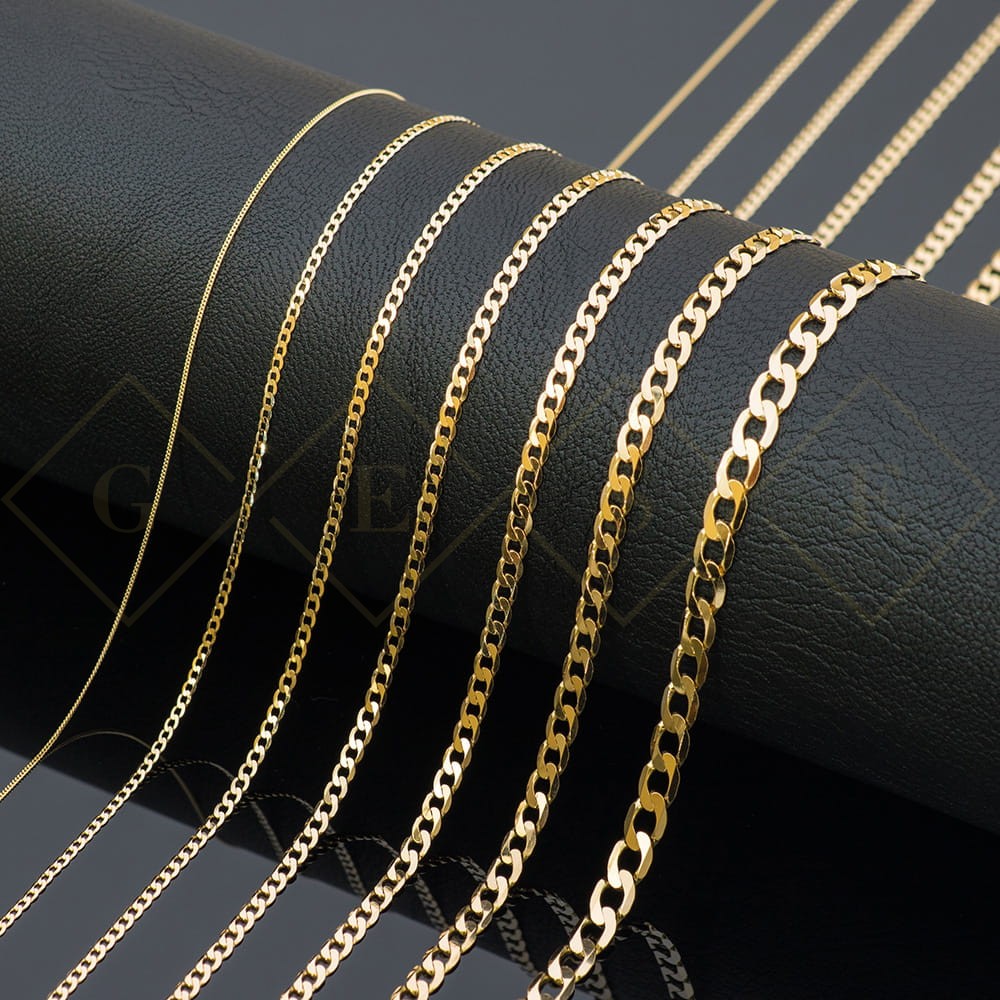 Precyzyjnie wykonany złoty łańcuszek próby 585. Splot pancerka gładka.