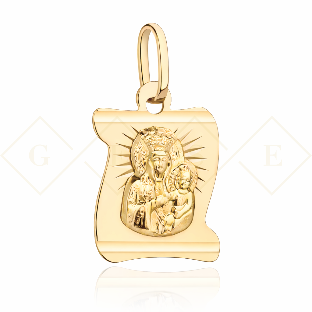 Medalik złoty Matka Boska Częstochowska na papirusie