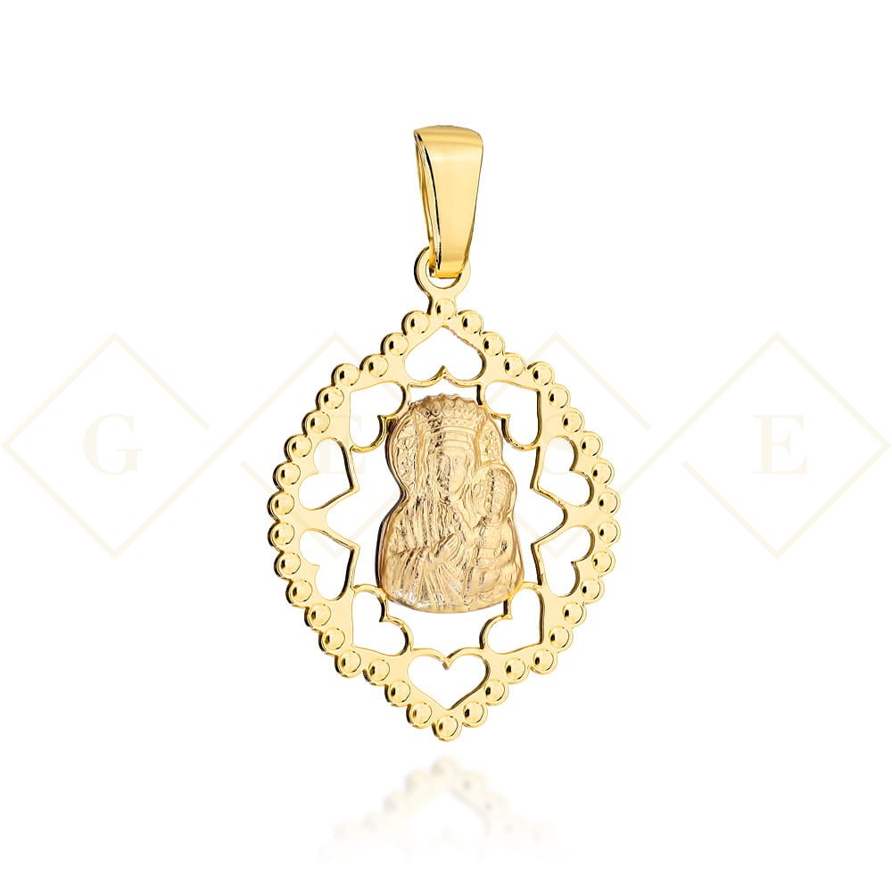 Medalik złoty Matka Boska Częstochowska w ażurowej oprawie
