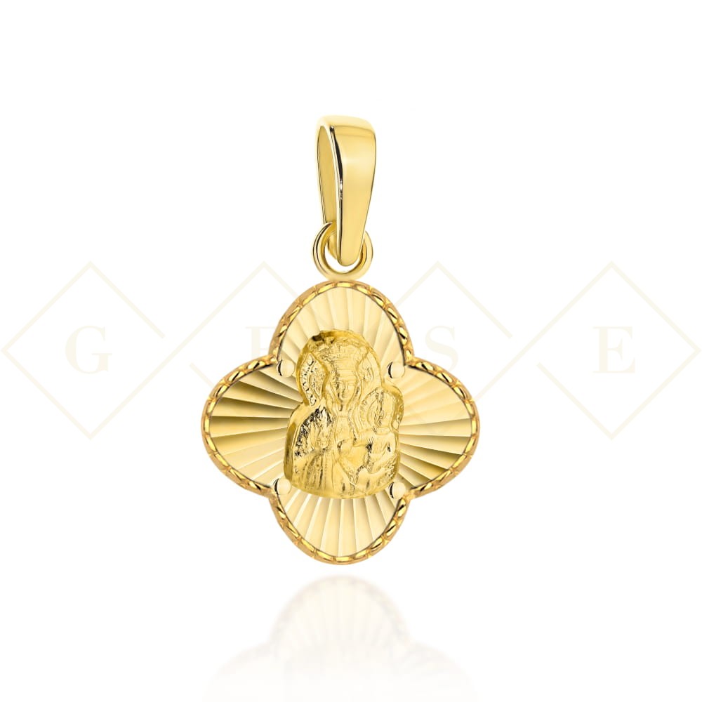 Medalik złoty Matka Boska Częstochowska w diamentowanej koniczynie
