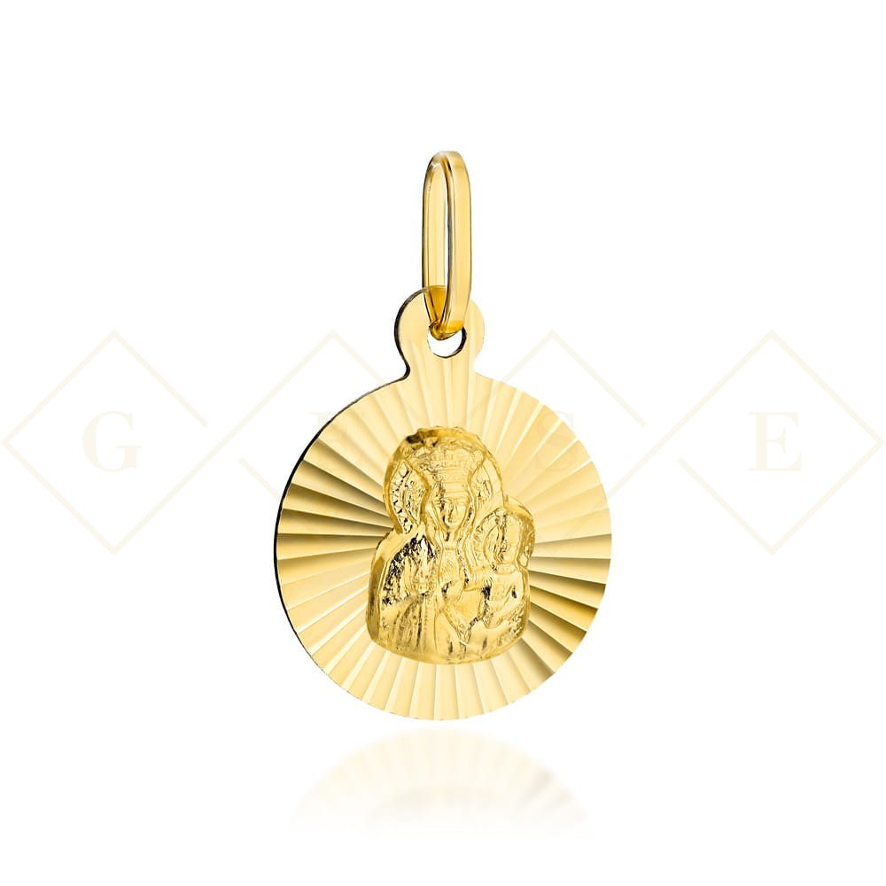 Medalik złoty Matka Boska Częstochowska w diamentowanym kółku