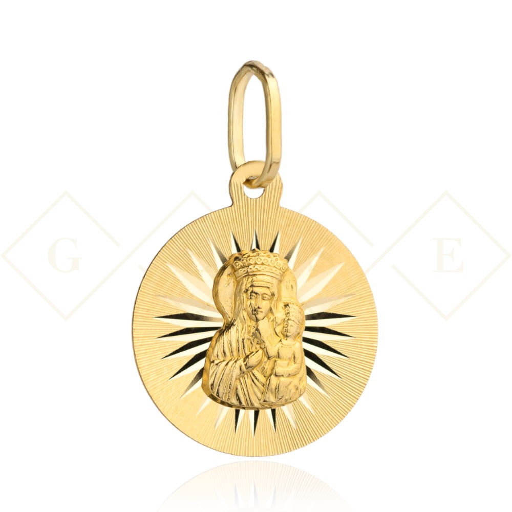 Medalik złoty Matka Boska Częstochowska z promieniami w kole