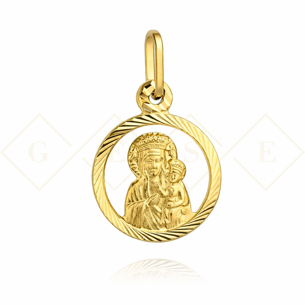Medalik złoty Matka Boska z Dzieciątkiem Jezus diamentowe koło pr. 585 zawieszka
