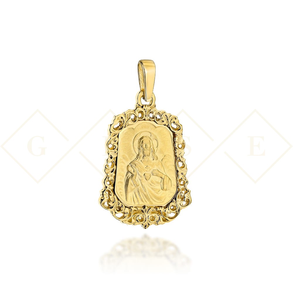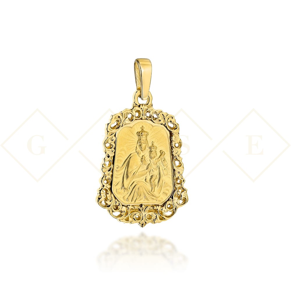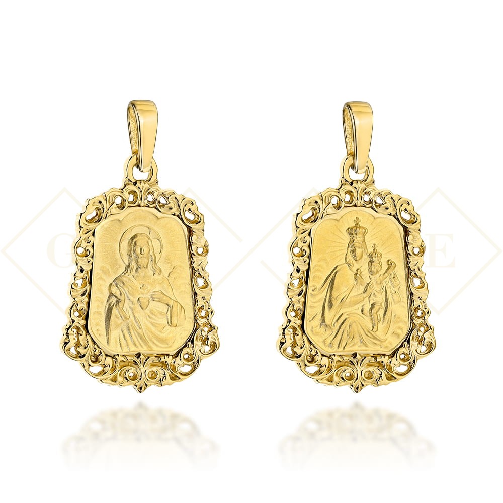 Medalik złoty dwustronny szkaplerz w ozdobnej oprawie