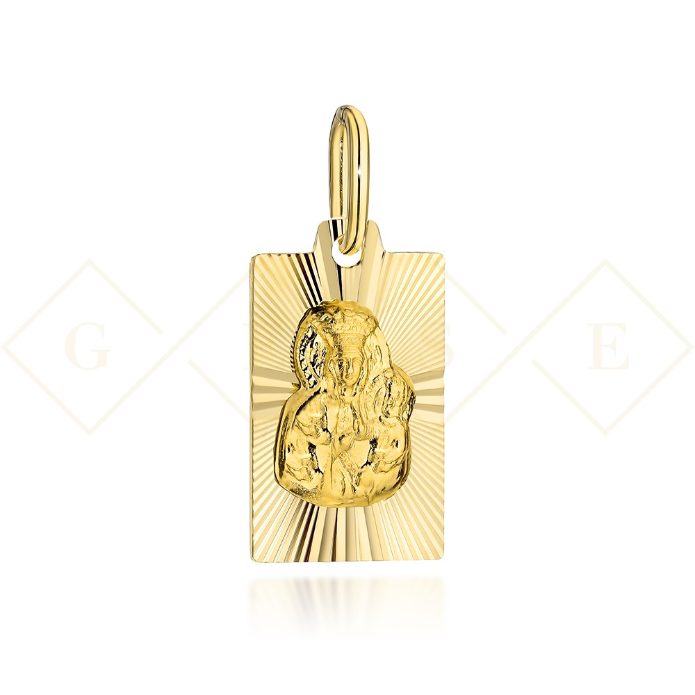 Medalik złoty prostokątny diamentowany z Matką Boską Częstochowską