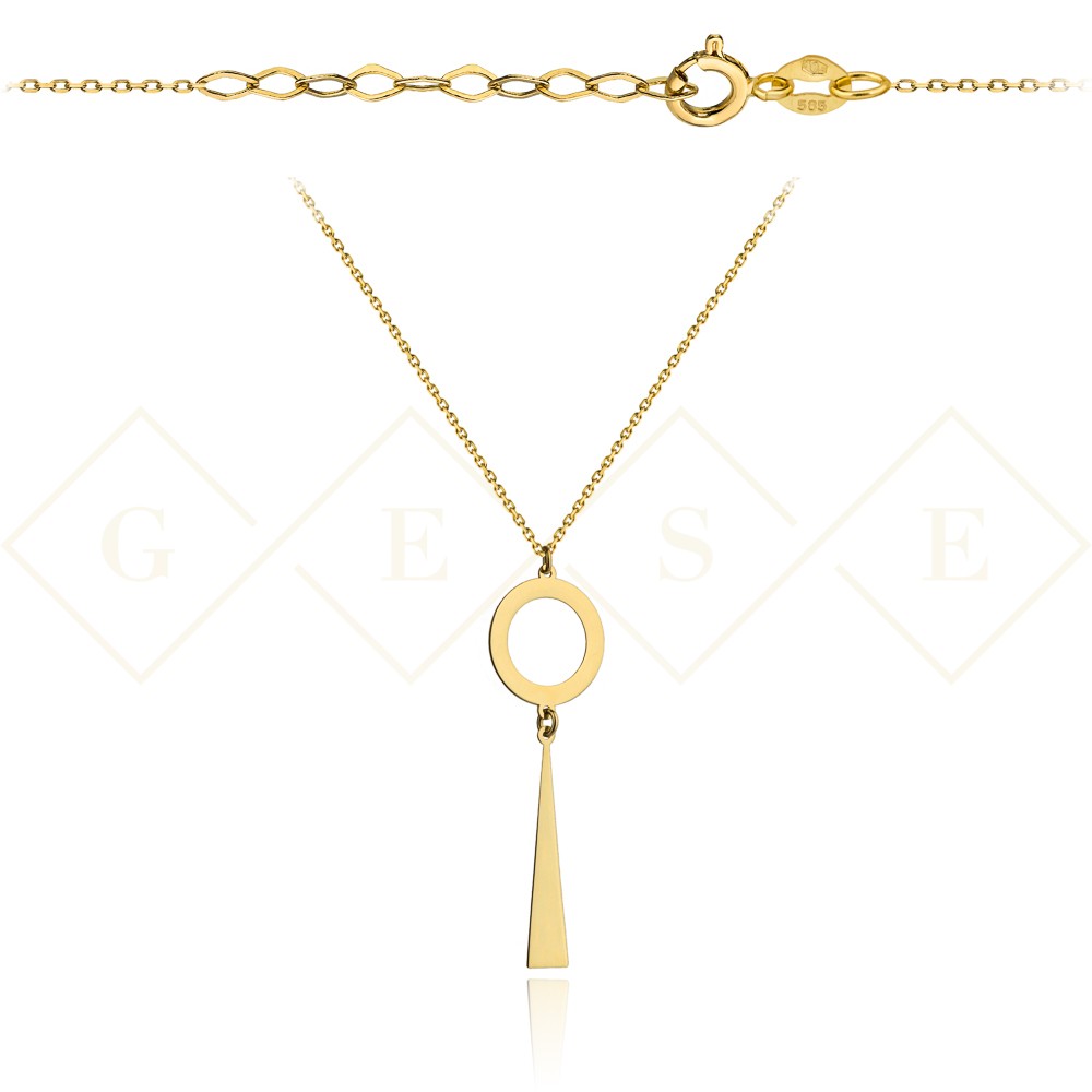 Naszyjnik złote koło typu ring z zawieszką w kształcie trójkąta