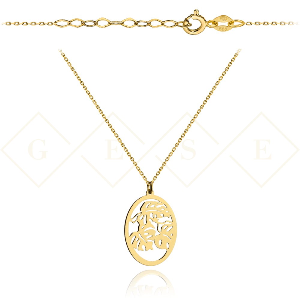 Precyzyjnie wykonany złoty naszyjnik próby 585. Łańcuszek ankier z modną zawieszką.