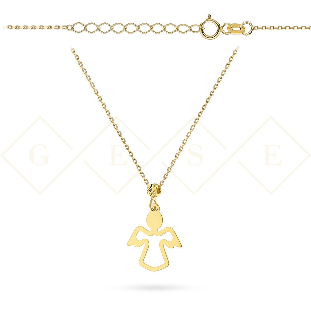 Precyzyjnie wykonany złoty naszyjnik próby 585. Łańcuszek złoty z aniołkiem.