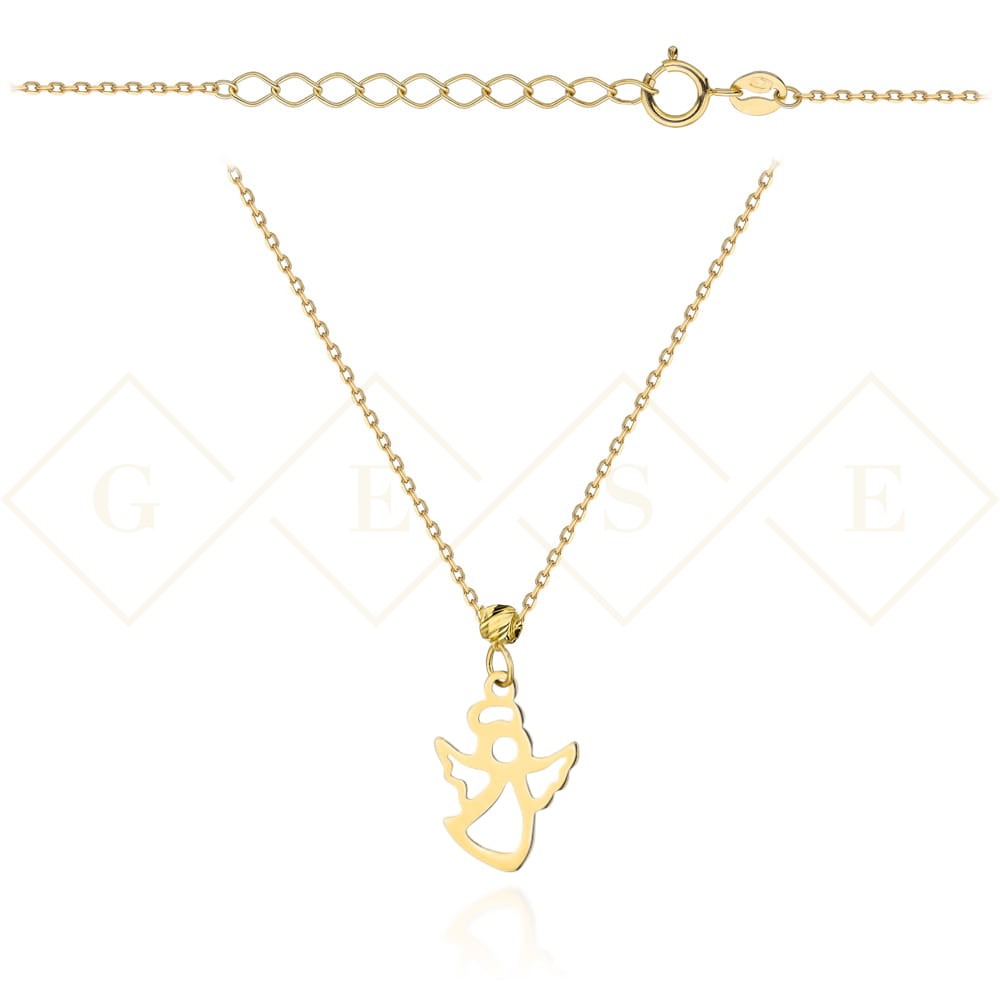 Precyzyjnie wykonany złoty naszyjnik próby 585. Łańcuszek złoty z aniołkiem.