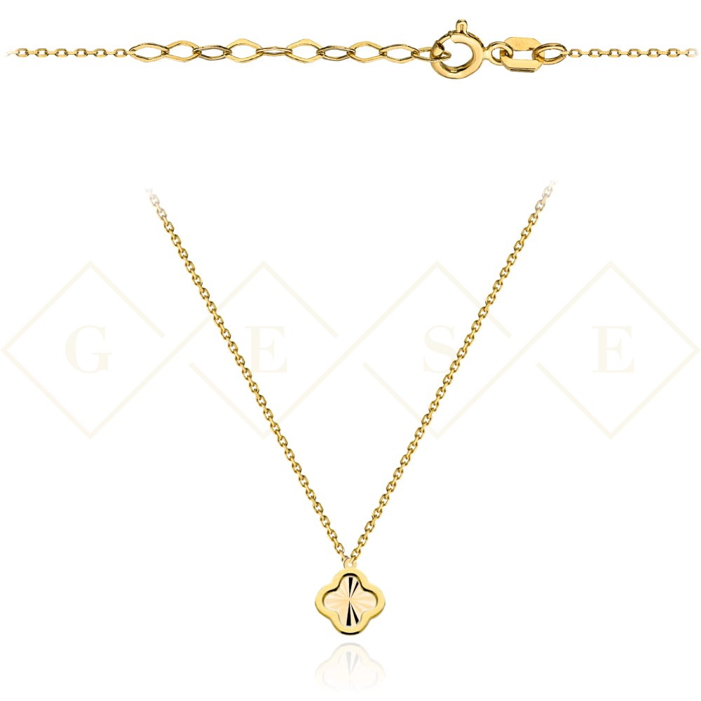 Precyzyjnie wykonana złota celebrytka naszyjnik próby 585. Łańcuszek ankier z modną złotą zawieszką - koniczynką.