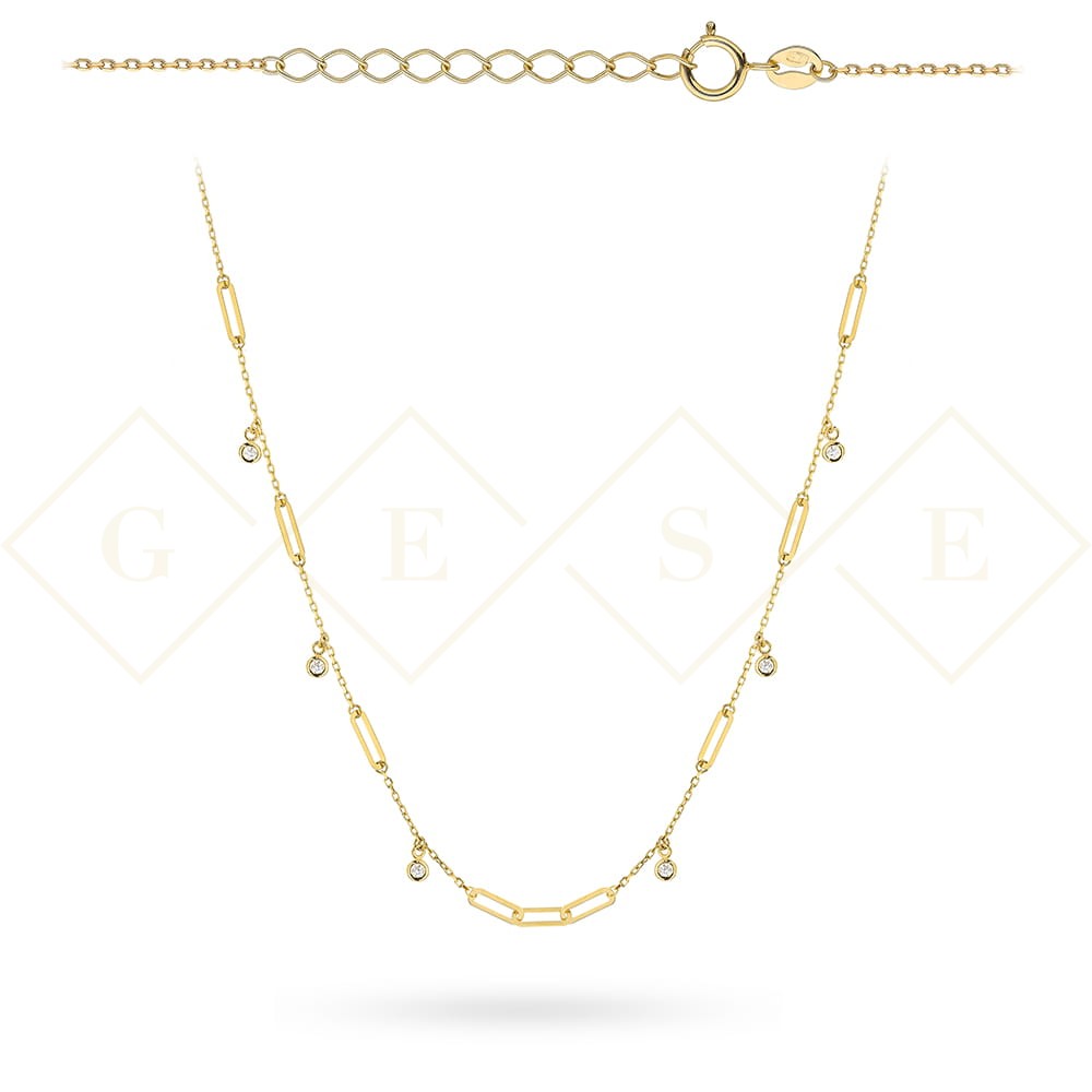 Naszyjnik złoty długie ogniwa i cyrkonie w oprawie złota