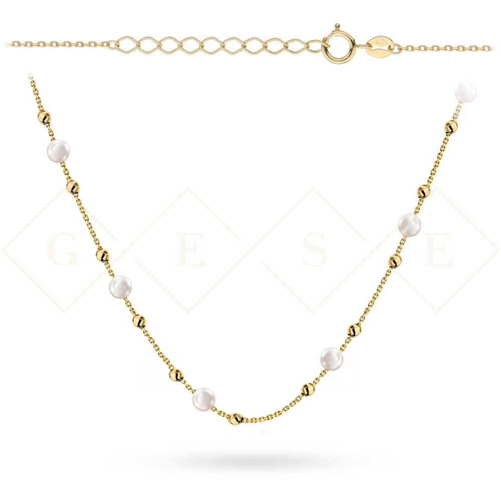 Naszyjnik złoty z gładkimi kuleczkami i perłami