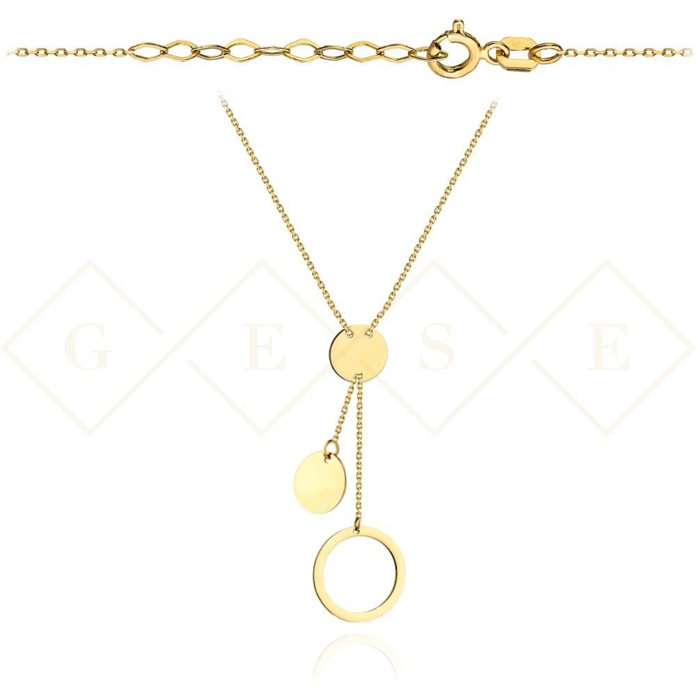 Naszyjnik złoty z pełnymi kółkami i ringiem krawatka