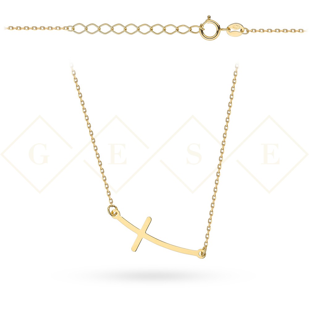 Naszyjnik złoty z zaokrąglonym krzyżykiem w poprzek pr. 375