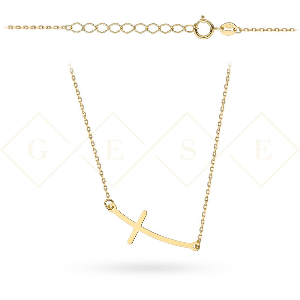 Naszyjnik złoty z zaokrąglonym krzyżykiem w poprzek pr. 585