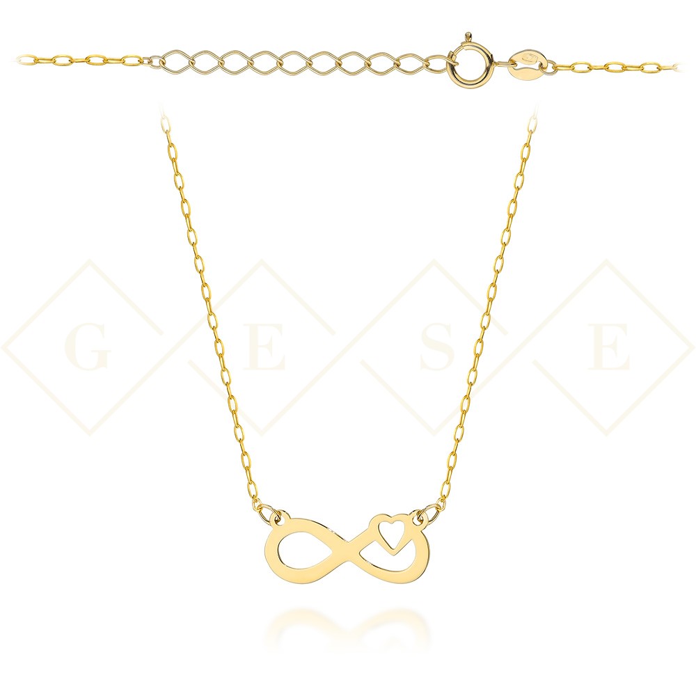 Naszyjnik złoty znak nieskończoności z serduszkiem pr. 375