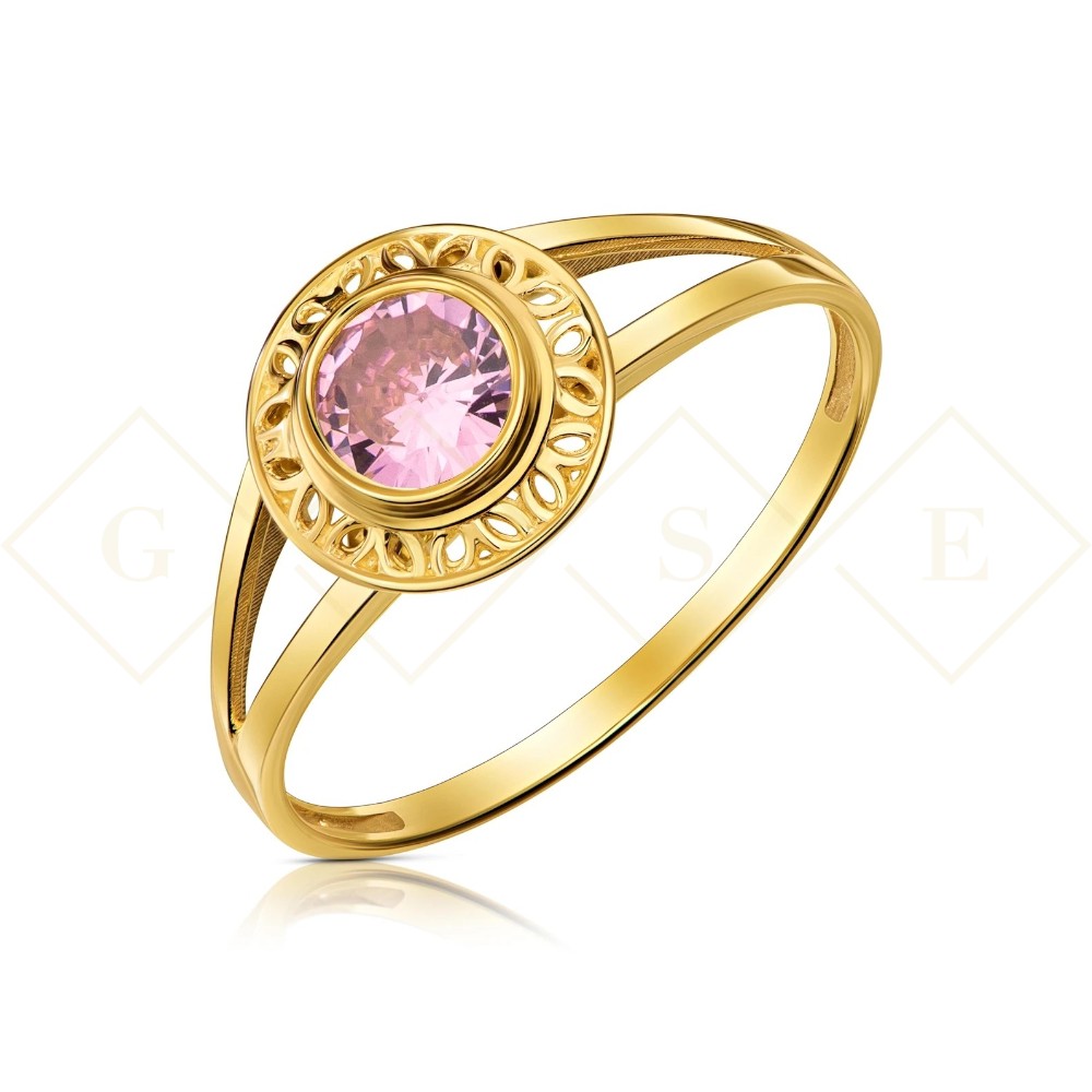 Pierścionek ażurowy złoty różowy kamień pr. 333 1.815r