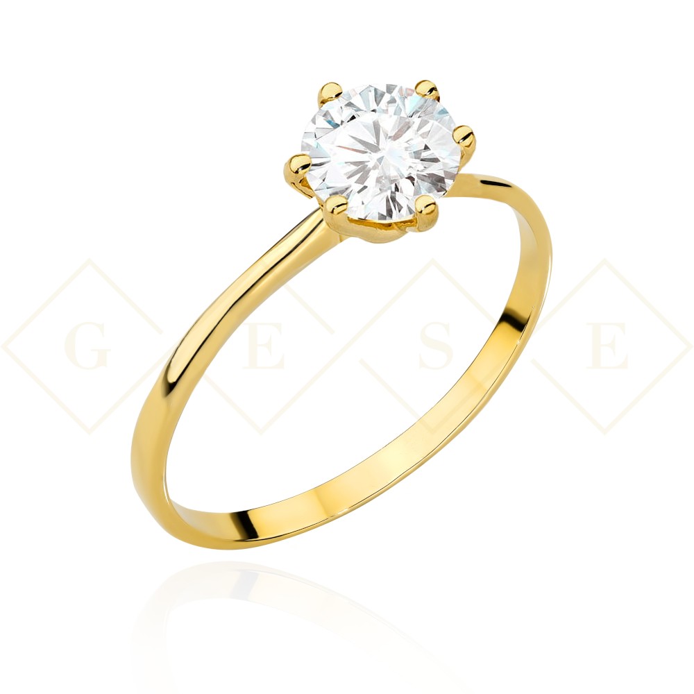 Pierścionek złoty klasyczny z centralną cyrkonią w sześciu łapkach