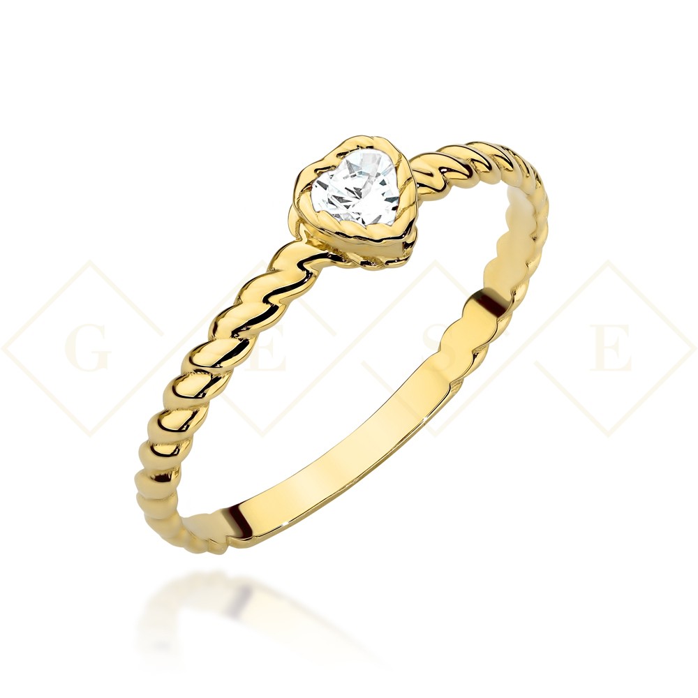 Pierścionek złoty pleciony z serduszkiem z cyrkonią