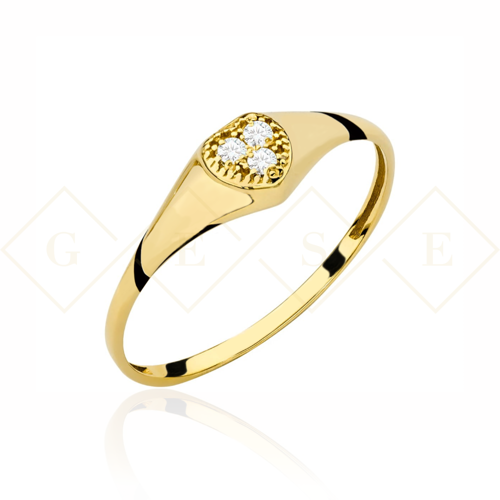 Precyzyjnie wykonany złoty pierścionek próby 585. Doskonały jako prezent dla ukochanej osoby na dzień kobiet, dzień matki, rocznicę czy jubileusz.