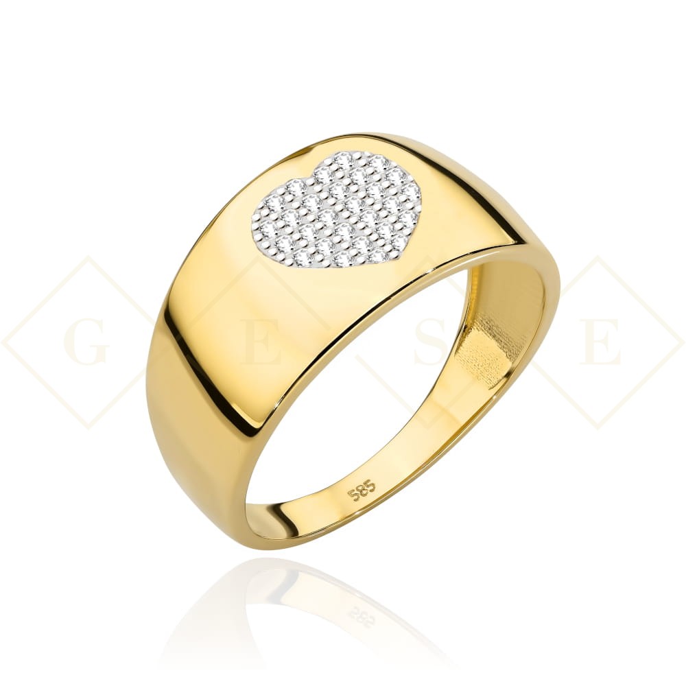 Precyzyjnie wykonany masywny złoty pierścionek próby 585 z sercem z cyrkonii. Doskonały jako prezent dla ukochanej osoby na dzień kobiet, dzień matki, rocznicę czy jubileusz.