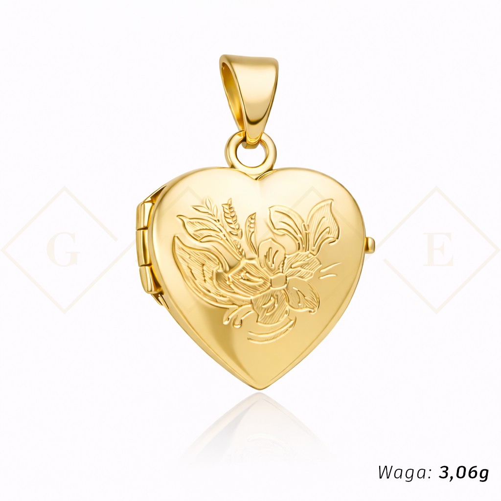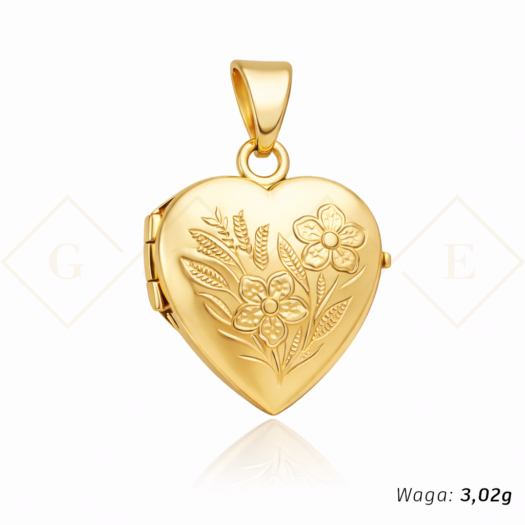 Zawieszka puzderko serce grawerowany kwiatek - różne wzory
