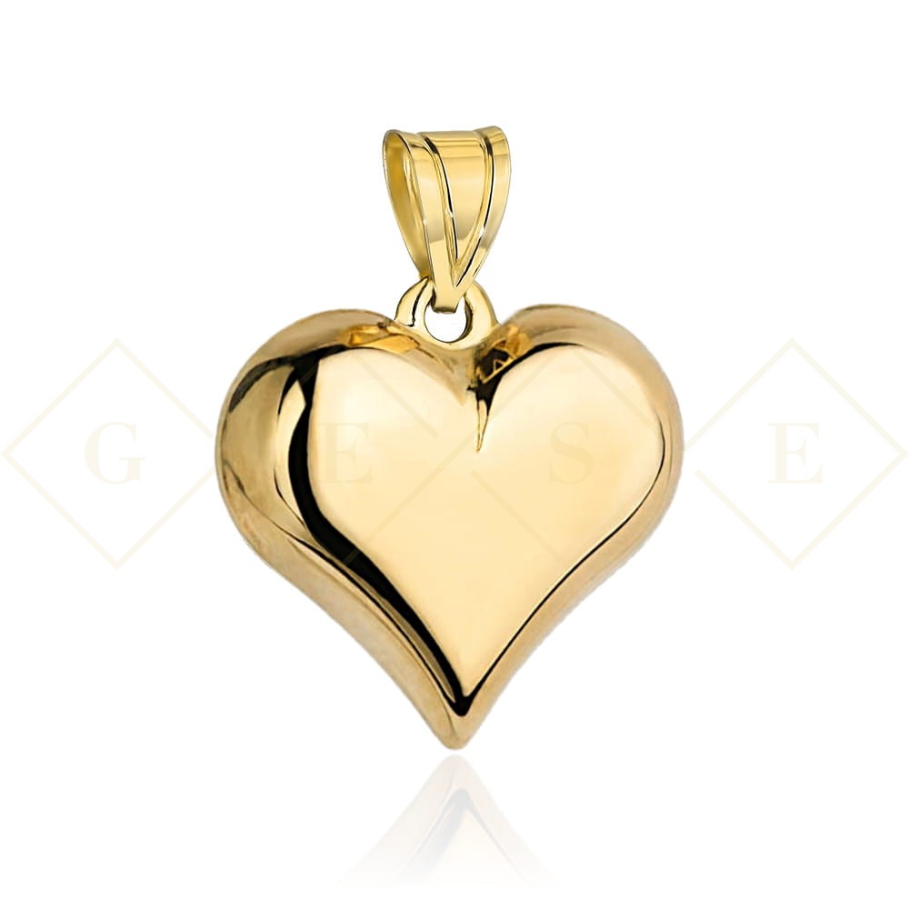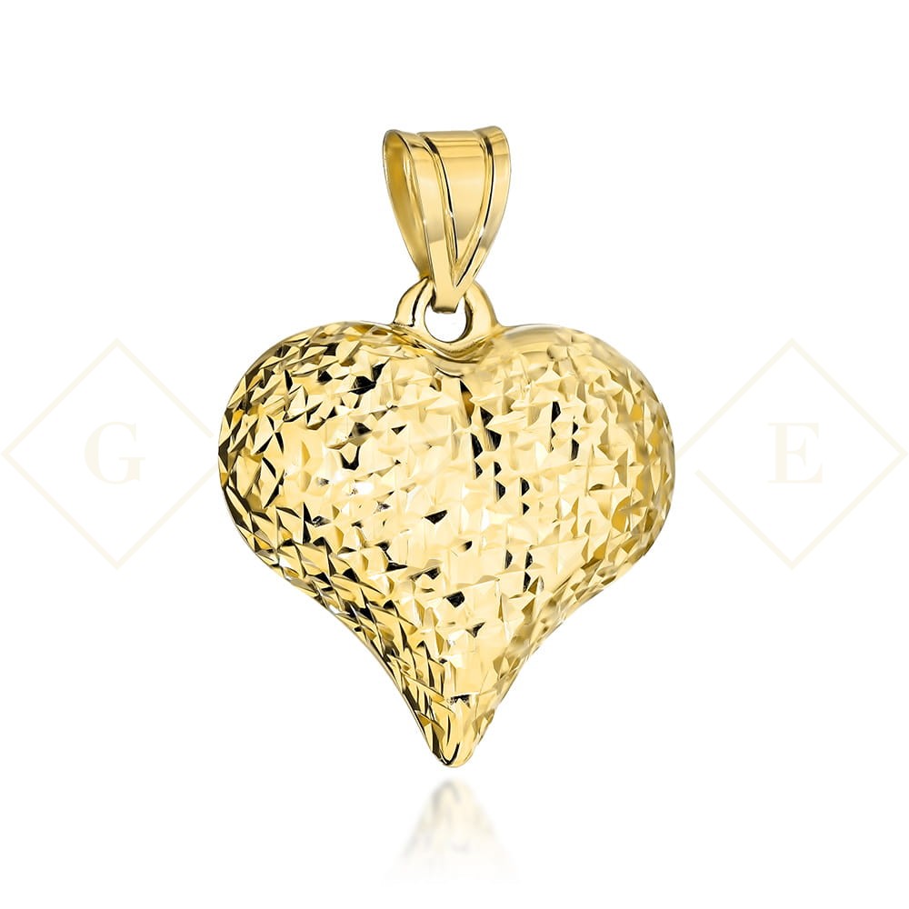 Precyzyjnie wykonana modna zawieszka próby 585 - dmuchane serce zdobione diamentowaniem.