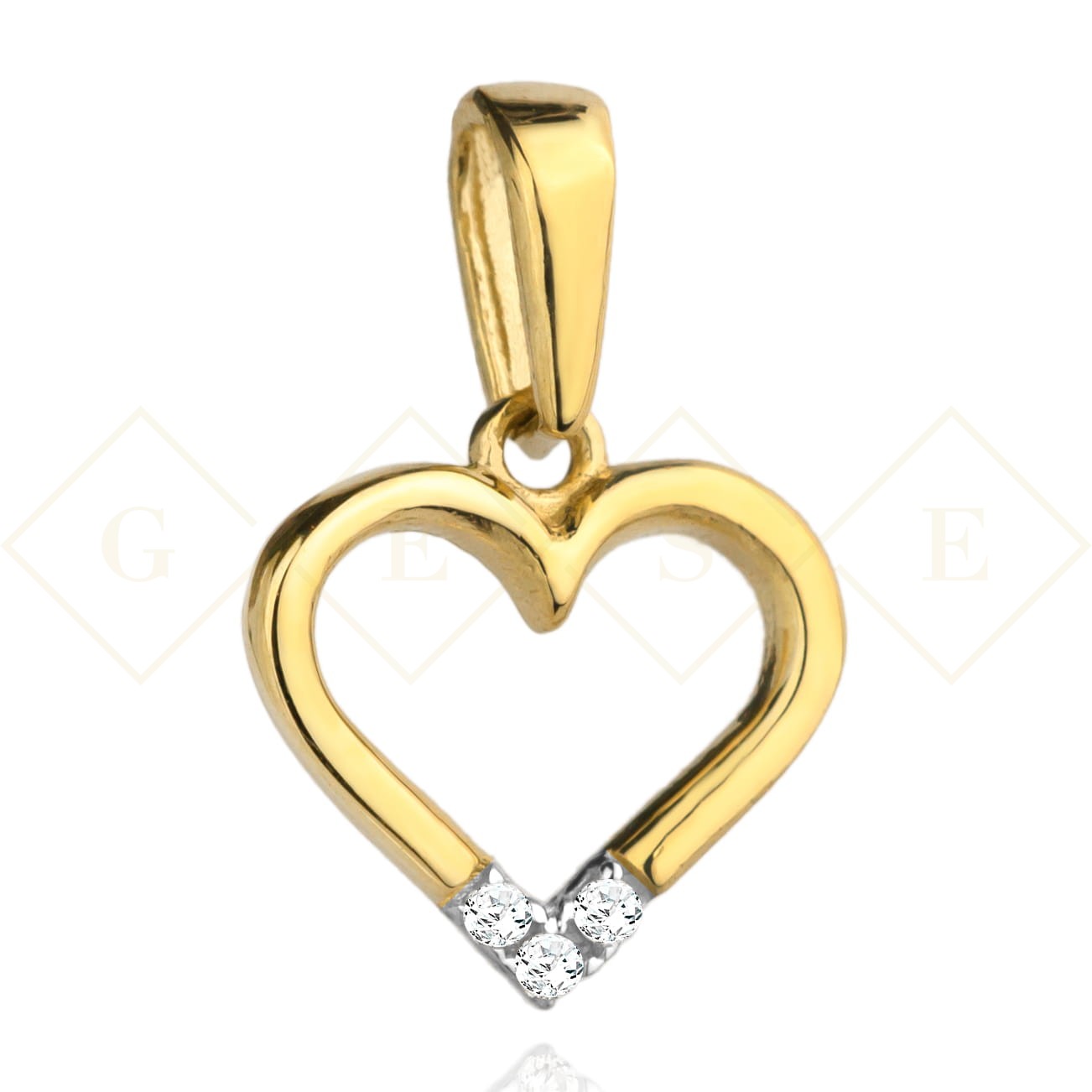 Zawieszka złota kontur serca z cyrkoniami na dole