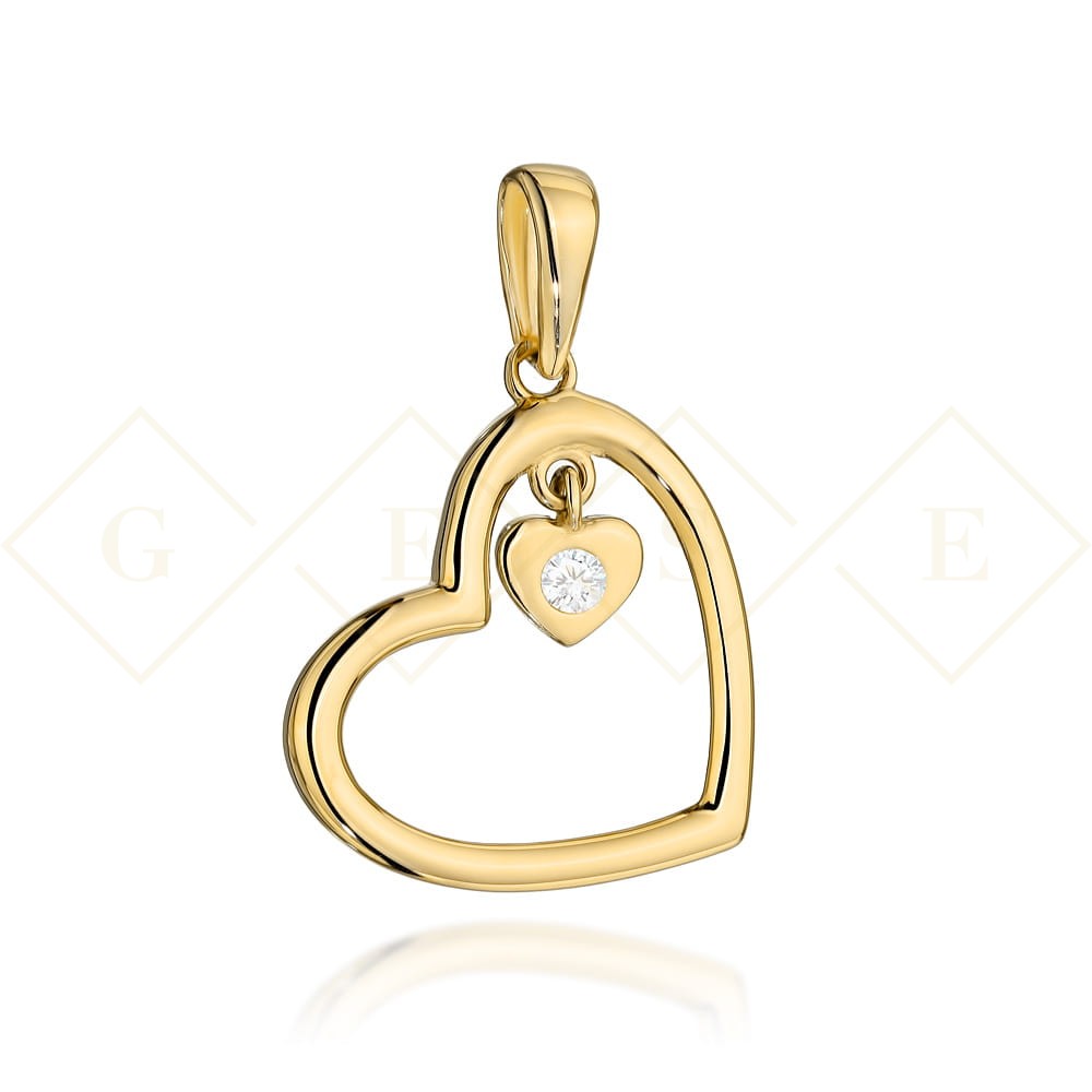Zawieszka złota serce z wiszącym serduszkiem z cyrkonią