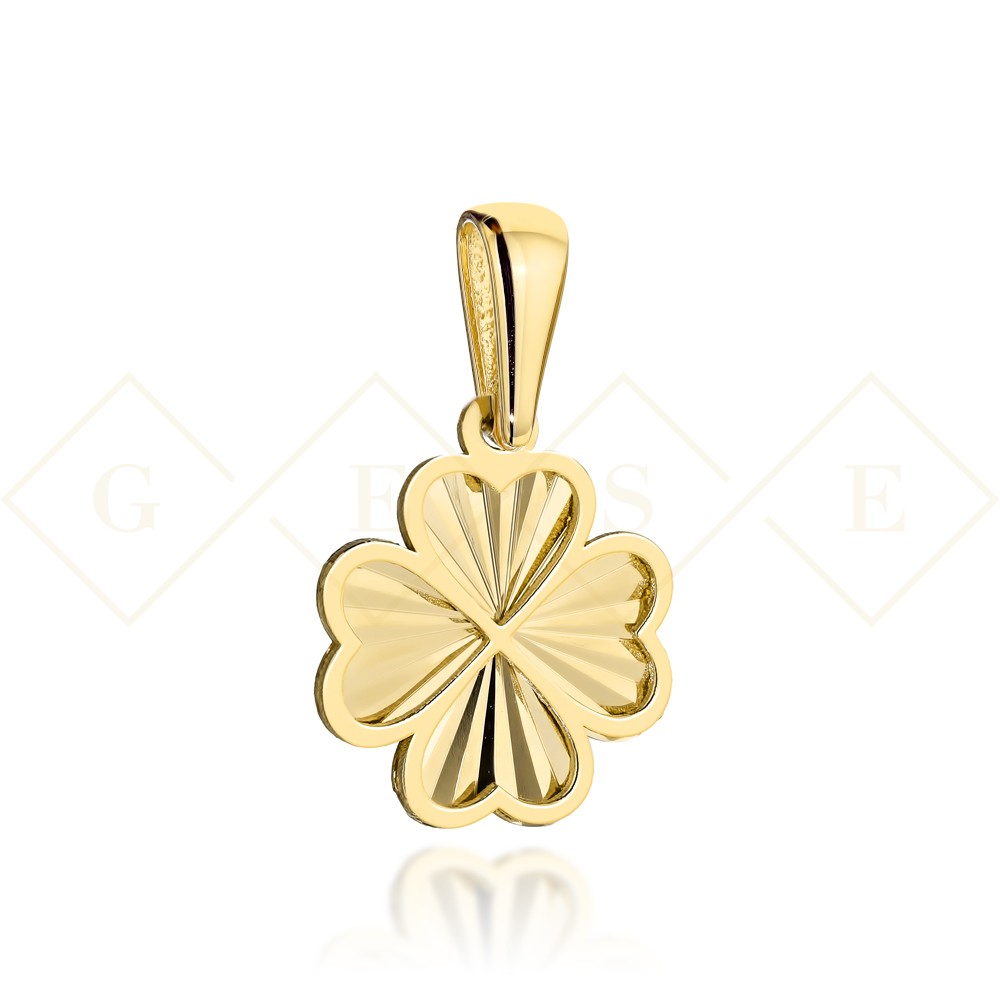 Precyzyjnie wykonana zawieszka próby 585 w kształcie koniczynki.