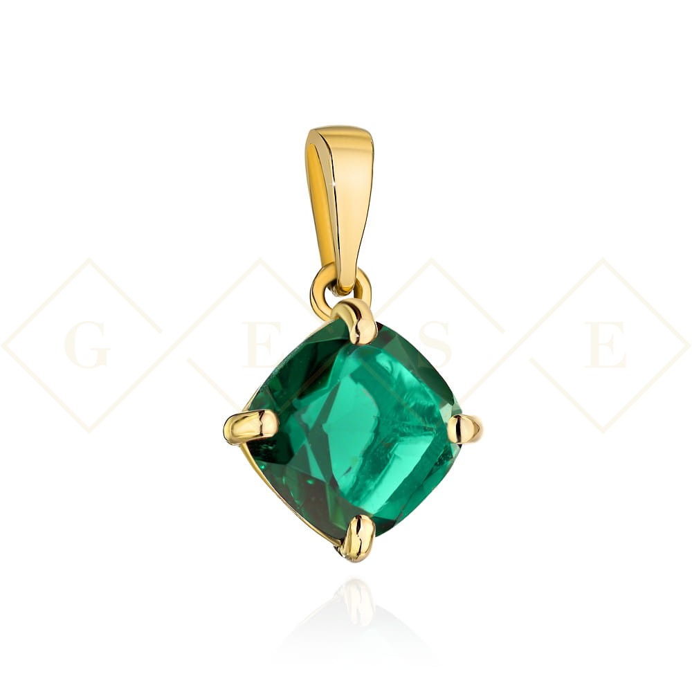 Zawieszka złota z kolekcji "COLORFUL STONE" - przezroczysty zielony kwarc kwadrat