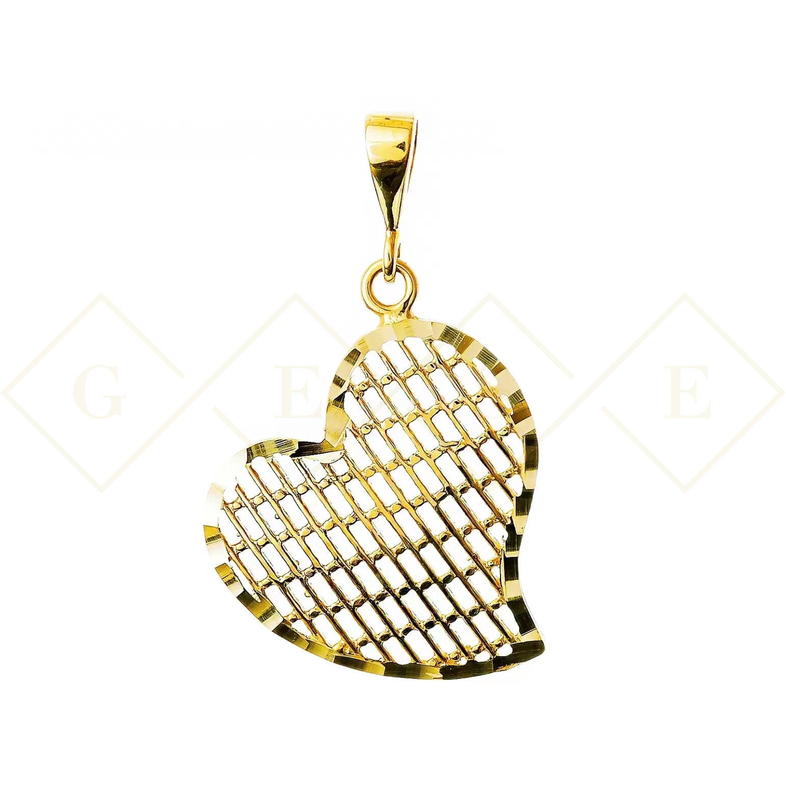 Wykonany z największą precyzją złoty wisiorek w kształcie serca. Bardzo modny, nacinany wzór.