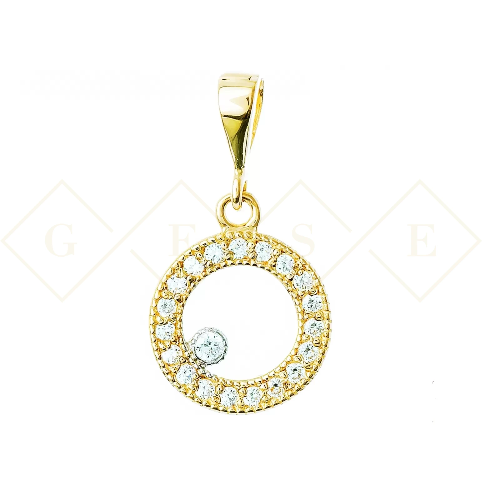 Wykonany z największą precyzją złoty wisiorek zdobiony cyrkoniami. Okrągły wzór prezentuje się bardzo subtelnie i atrakcyjnie. Zawieszka świetnie sprawdzi się też jako prezent na każdą okazję.