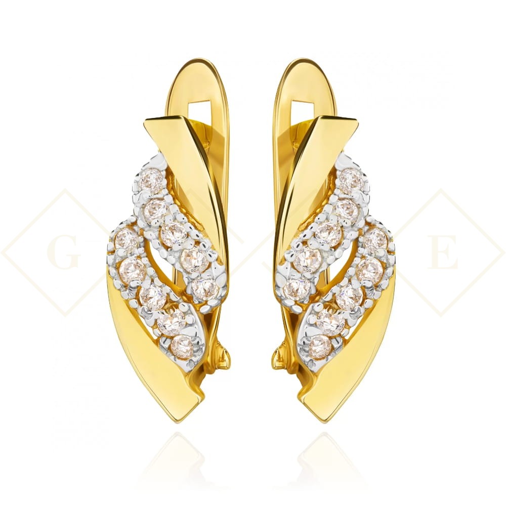 Złote kolczyki Clair zostały przygotowane w formie delikatnych listków wysadzanych błyszczącymi kamieniami. Niezwykle błyszczące nadają się do każdej stylizacji.