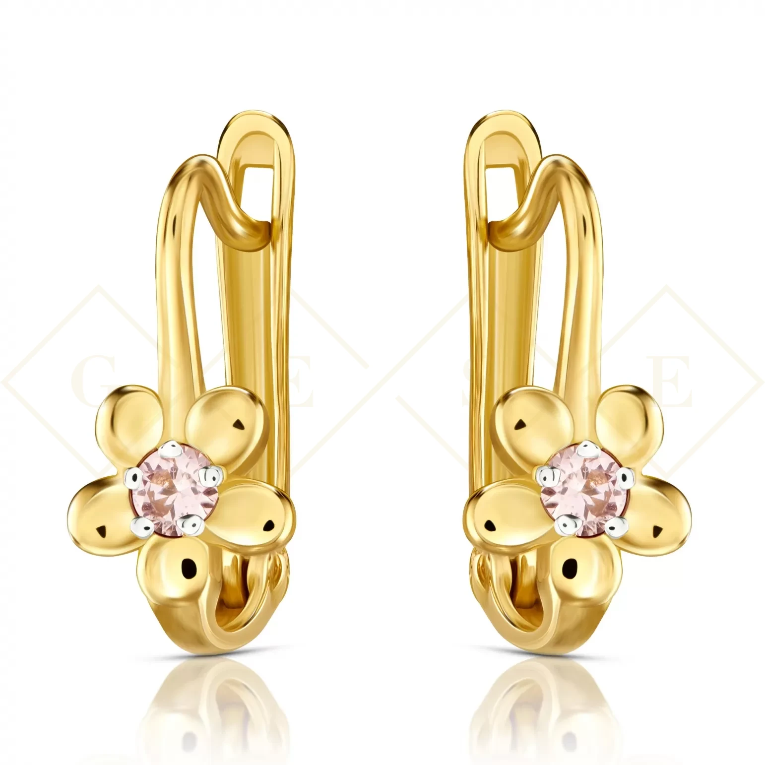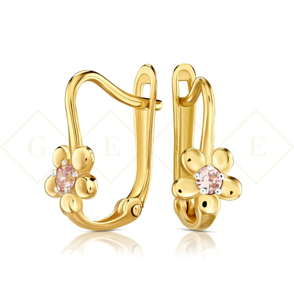Złote kolczyki Flowers jasny róż pr. 333