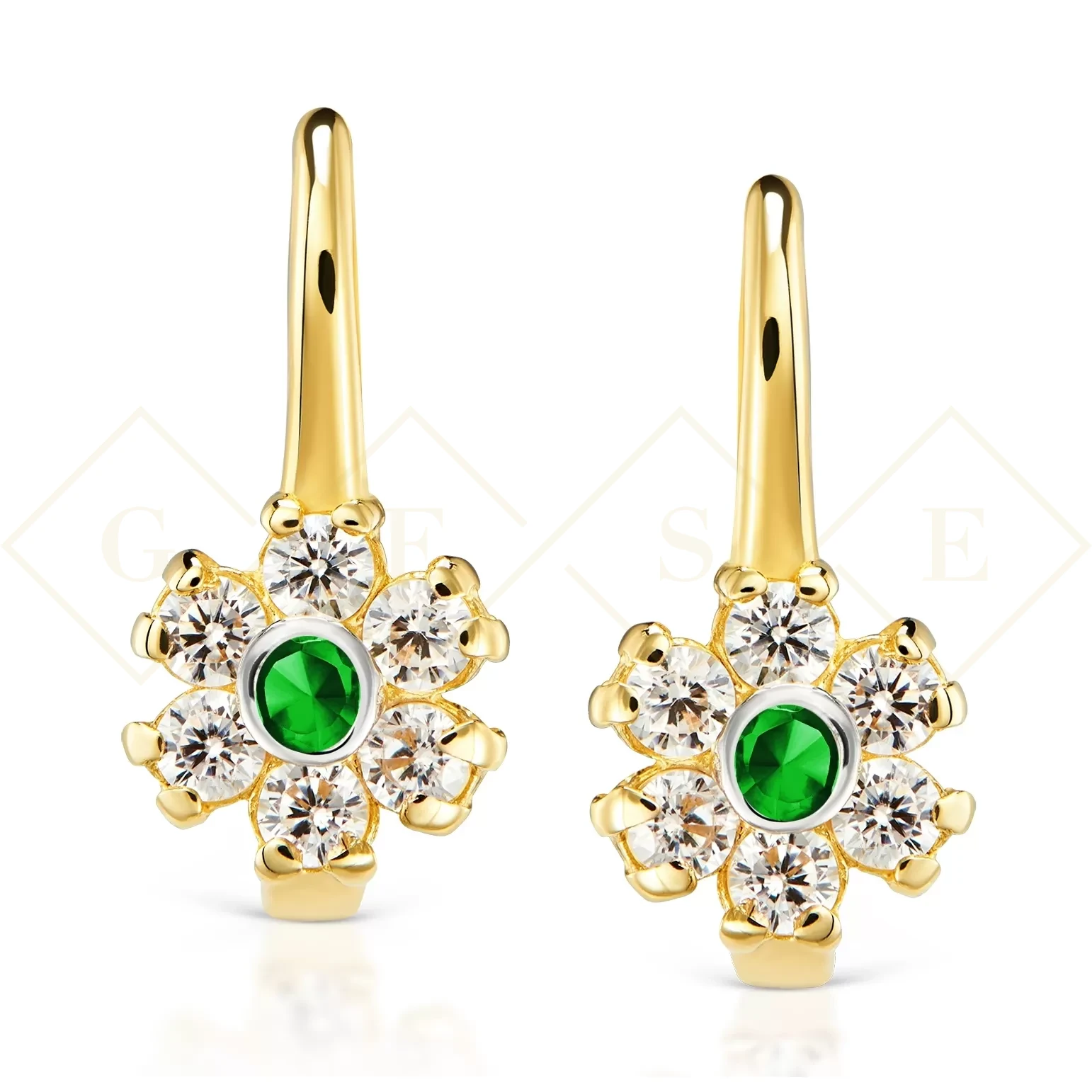 Złote kolczyki Flowers szmaragdowe pr. 333
