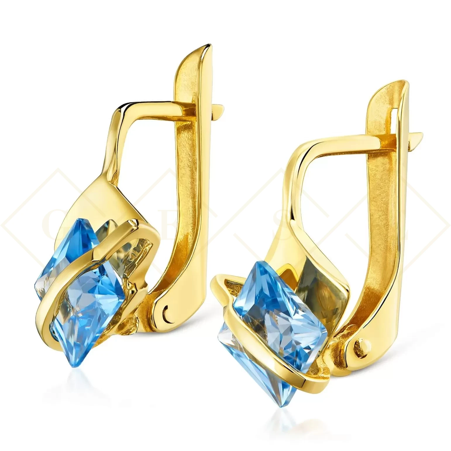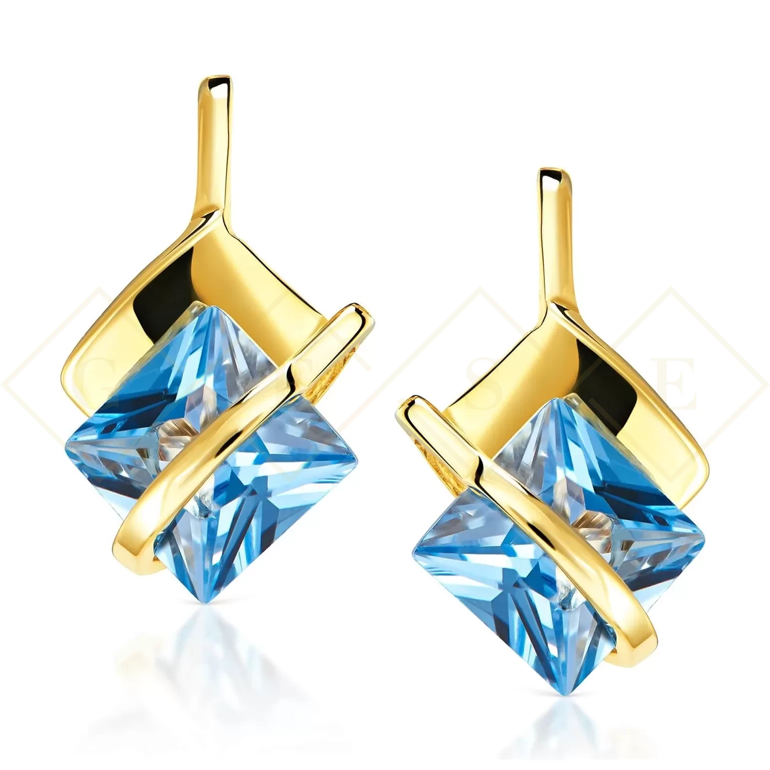 Kolczyki w cudownej lazurowej oprawie przygotowane specjalnie dla eleganckiej kobiety ceniącej proste, ale niezwykłe wzory. Wykonane ze szlachetnego stopu złota w próbie 333. zaopatrzone w funkcjonalne zapięcia. Biżuteria doskonale nadaje się do stylizacji codziennych jak również wieczorowych.
