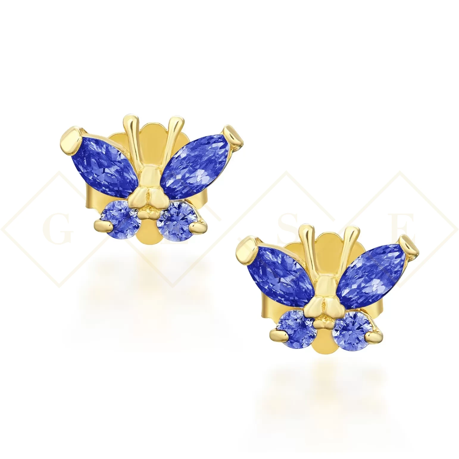 Złote kolczyki MOTYLKI niebieskie pr. 333