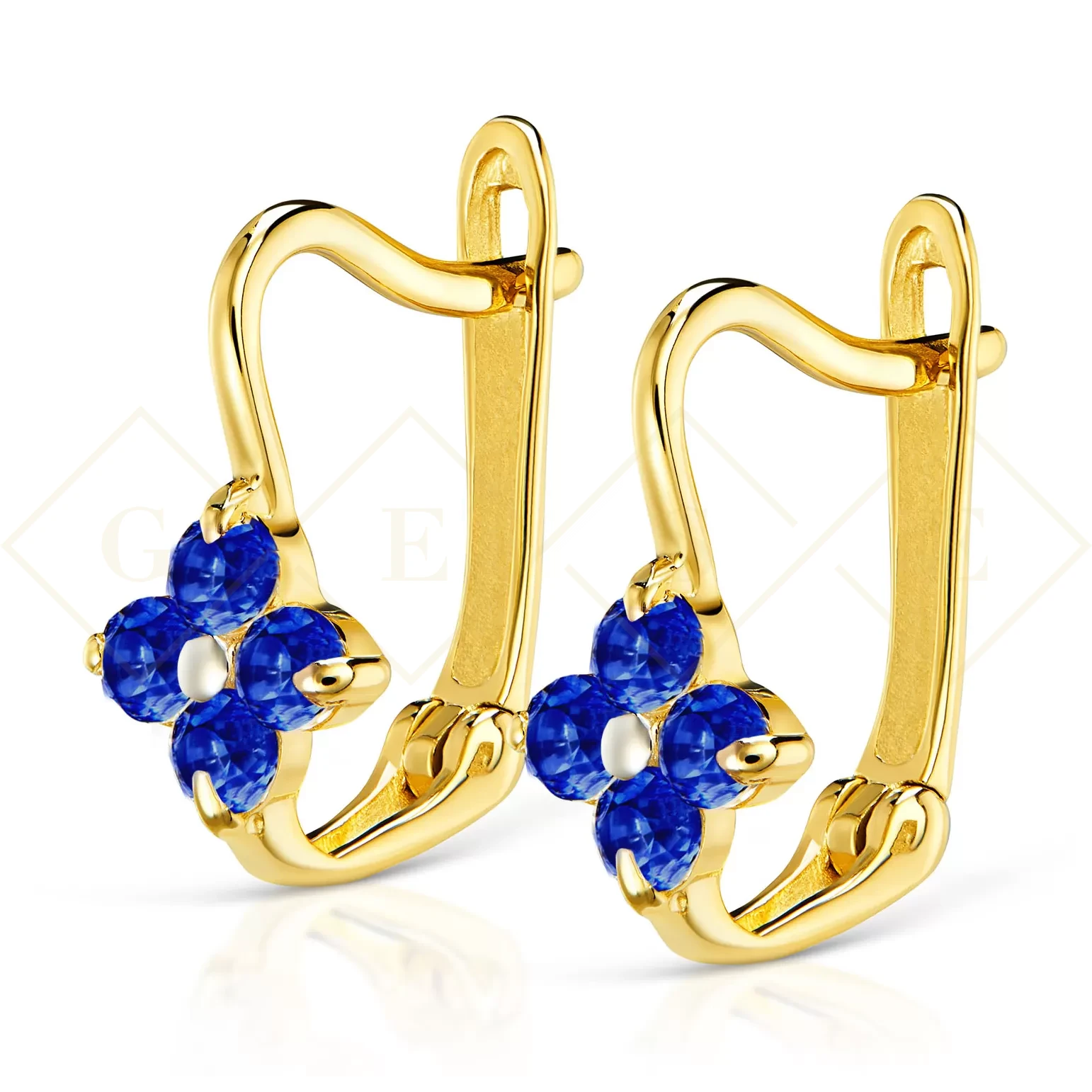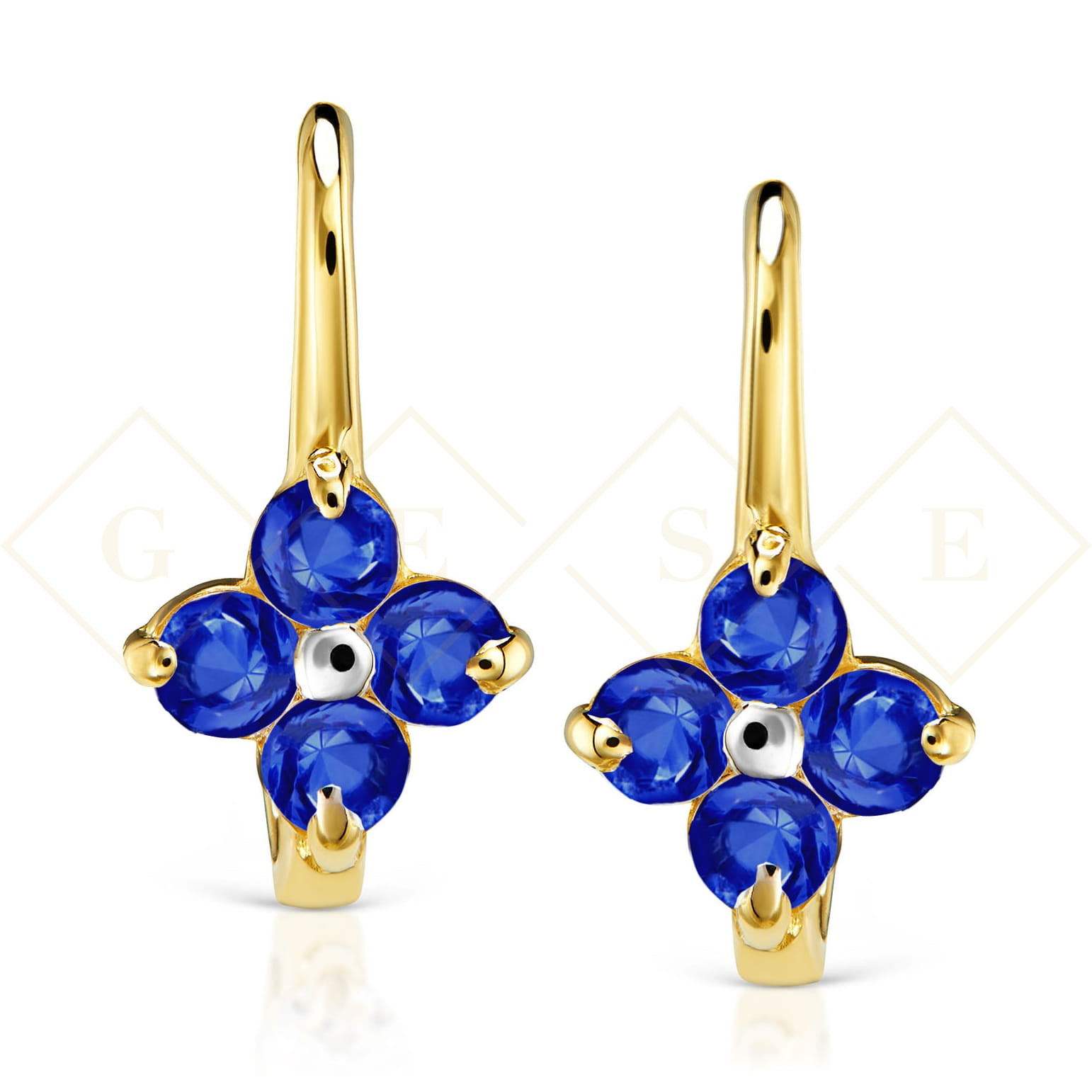 Złote kolczyki Małe Kwiatuszki szafirowe pr. 333 3.2375n